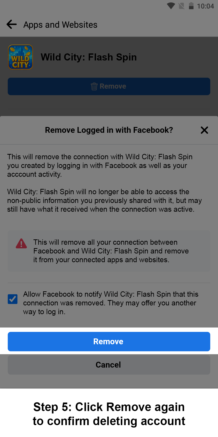 Also, if you want to delete your game activities for Wild City: Flash Spin you can remove your game activities by the following instructions.