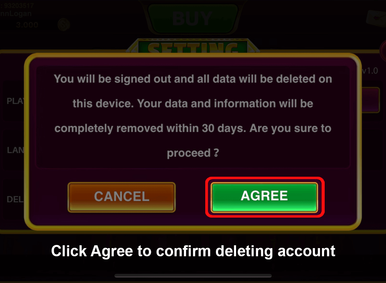 2. Step 2: Click "Agree", we will confirm your identity that your request then delete it within thirty (30) business days